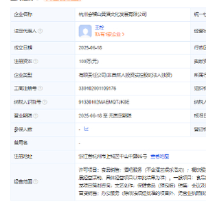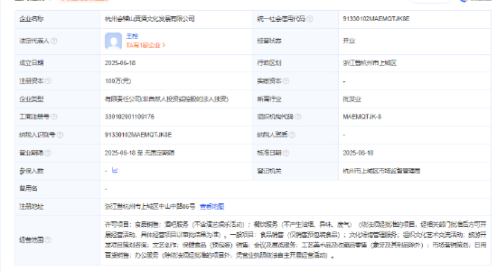爱企查显示,6月18日,杭州会稽山黄酒文化发展有限公司成立,法定代表人为王栓,经营范围包含:文化场馆管理服务;组织文化艺术交流活动;旅游开发项目策划咨询等。