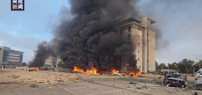 总台记者 赵兵:19日伊朗对以色列发动报复式袭击,这是过去几天以来伊朗导弹袭击范围最广、规模最大的一次,凸显出在遭以军持续大规模空袭后,伊朗仍能有力回击,且不断升级针对以色列的打击目标和手段。当天伊朗向以色列发射三轮共计40多枚导弹,凌晨和下午的袭击未造成人员伤亡,19日早间的袭击击中以色列中部和南部4个不同地区的7个地点。其中,以色列南部贝尔谢巴最大医院一栋已提前疏散的住院楼被直接击中,该医院附近是以军南方司令部基地、部分情报机构以及一支负责以军战场通信联络和网络等工作的精锐技术部队重要基地。