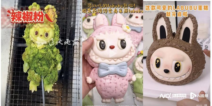 拉布布热度从潮玩圈刮到了美食圈,蛋糕店、烧烤档等制作出拉布布产品。南都记者留意到,有辽宁烧烤档用西兰花等蔬菜制作出拉布布,洒上辣椒粉后烤制,被网友称为“辣椒粉销量版”。烟台网友制作出胶东花饽饽版拉布布,将传统手艺与潮玩IP相结合,好看且好吃。还有博主发布拉布布蛋糕制作视频,教网友制作拉布布蛋糕。