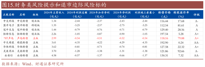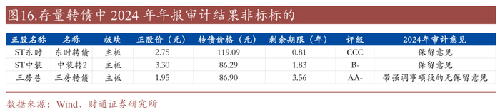 此外若年报被出具无法保留意见/否定意见同样面临风险警示和退市,目前转债暂无相关标的。从边际风险来看, 3只转债(ST东时、ST中装、三房巷)2024年年报审计意见为非标意见。若上述个券2025年年报获无法表示意见或否定意见,将被实施退市风险警示或直接退市。