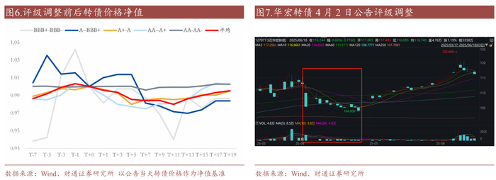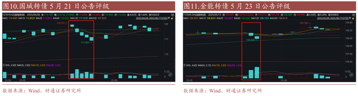 2024年转债评级调整数量和影响显著增加。复盘历史转债评级调整行情,2024年评级调整数量和影响较大,彼时市场出现多重信用风险冲击,4月12日“国九条”出台、弱资质个券出现风险(普利未按时发布年报、岭南公告存在赎回风险)、三房等评级超预期调整、多只破面转债出现减资清偿和回售压力,此外山鹰下半年也面临较强的到期兑付压力,引发市场对转债违约风险的进一步担忧。