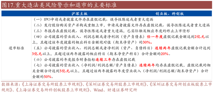 重大违法类&规范类退市规则