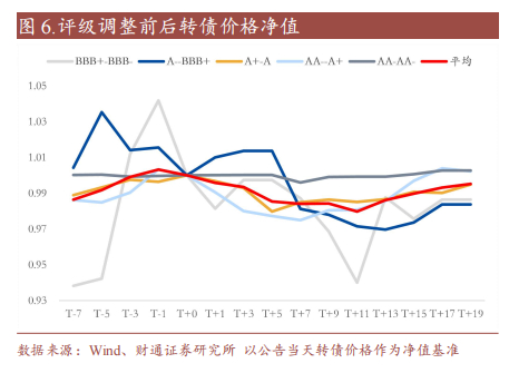 在低风偏情绪下,光伏转债6月出现较强抛压,加剧了市场的风险负反馈,投资者利空消息较往年更敏感,且基本面弱修复下转债评级调整数量较往年更多,因此评级调整前一周转债价格普遍呈现明显调整趋势,但在2024年以前,评级调整前后转债价格并没有显著变化。