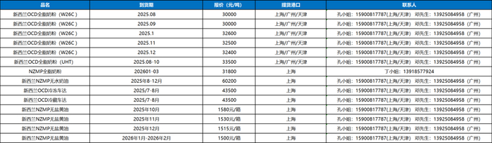 5. 新西兰主要厂家/产地动态:新西兰主要乳企恒天然新产季收奶价格维持不变。