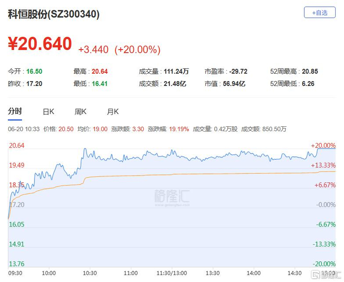 孙哥:净买入科恒股份1.23亿元