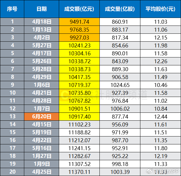 注:A股年内成交额较低的20个交易日(截至6月20日收盘)