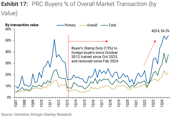 第二,香港已取消居民或非居民购买的所有额外印花税。相比之下,在新加坡,外国买家需要支付房价的64%作为额外印花税,从而减少了外国买家的投资需求。