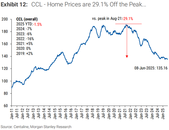 我们的远期价格预测得到以下因素的支持:1)较低的公司BBB收益率假设(4Q25的BBB收益率为+4.6%,而之前的BBB收益率为+5.2%),2)库存单位增长不变(季度-25个基点,而之前的季度-25个基点),以及3)不良销售预期不变(多户型不良销售占总销售额的百分比为+5个基点,而之前的季度+5个基点)。