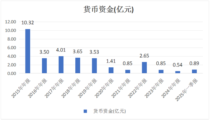 与此同时,公司账上现金也出现大幅下滑,货币资金从2015年的10.32亿元下滑到2024年仅剩0.54亿元,对于立志做新药研发的公司来说(单只创新药的研发资金都是几亿元甚至十亿元起步),这点资金可谓是杯水车薪,资金缺口非常大。