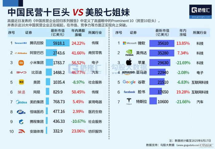 高盛还指出,“中国十巨头”具备类似“美股七姐妹”的市场主导力量,提醒全球投资者需要特别重视。