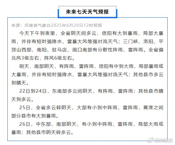 河南东南部大到暴雨、局部大暴雨!北中部升温通道开启