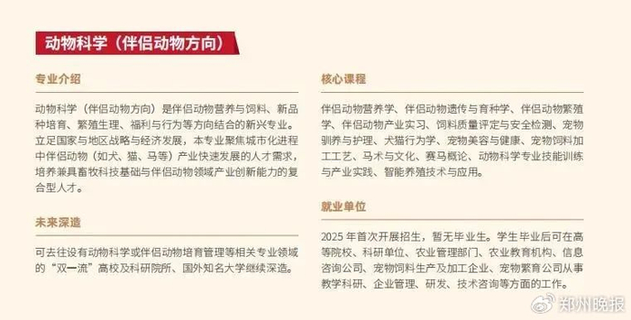全国首个“宠物”本科专业今年开始招生,校方:专业聚焦猫、狗、马等伴侣动物,2个班共招50人。