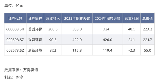 2024年,水务与水治理行业上市公司的“应付账款及票据周转天数”的中值为298天,首创环保为324天,兴蓉环境为426天,清新环境为119天。由此可见,该行业头部公司的“周转天数”差距较大。