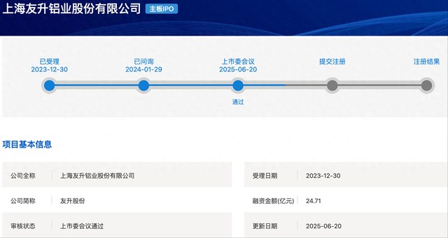 上交所上市审核委员会定于6月20日召开2025年第20次上市审核委员会审议会议,审议上海友升铝业股份有限公司(简称“友升股份”)首发事项,最终公司顺利过会。