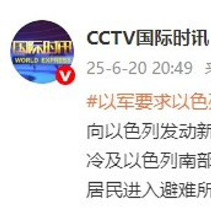 据@CCTV国际时讯 消息,当地时间今天(6月20日)下午,伊朗向以色列发动新一轮导弹攻击,耶路撒冷及以色列全国响起防空警报。耶路撒冷及以色列南部贝尔谢巴等地区多次传出爆炸声。以色列本土守备司令部要求全境居民进入避难所。