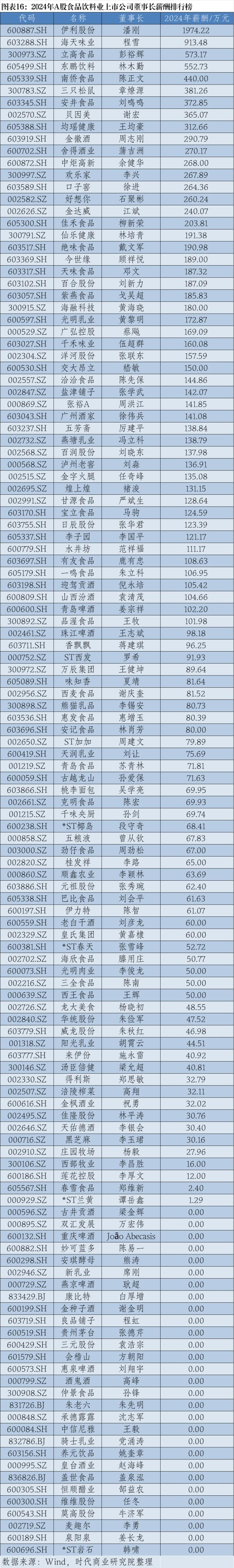 食品饮料:伊利股份董事长潘刚薪酬最高