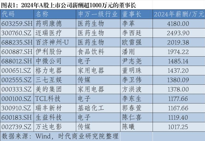 2024年A股上市公司高管薪酬排行榜:医药生物行业备受瞩目