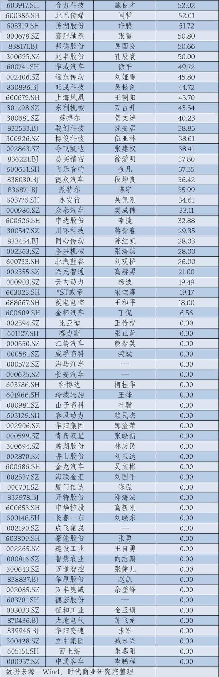 2024年,A股汽车业总经理的薪酬平均值为130.05万元。其中,薪酬最高的是均胜电子(600699.SH)陈伟,为1189.05万元;薪酬最低的是金杯汽车(600609.SH)丁侃,为6.56万元。