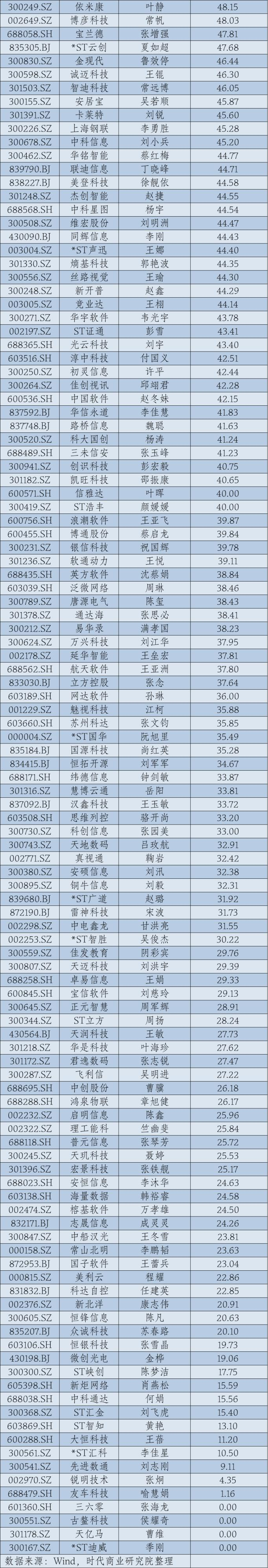 Wind数据显示,截至2024年末,A股5474家上市公司中,剔除职位空缺、离任、在关联方领取薪酬等特殊情形(薪酬显示为0元)后,董事长群体中有12人薪酬超1000万元,总经理群体中有7人薪酬超1000万元,董秘群体中则无一人薪酬达千万元级别。