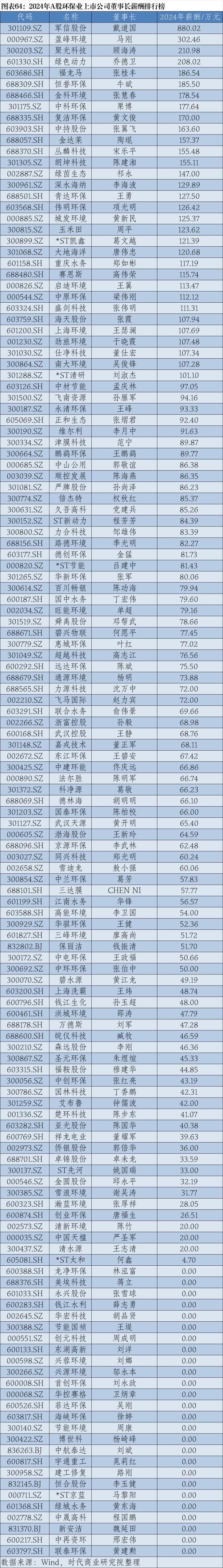 Wind数据显示,2024年,A股环保业董事长的薪酬平均值为91.92万元。其中,薪酬最高的是军信股份(301109.SZ)戴道国,为880.02万元;薪酬最低的是*ST太和(605081.SH)何鑫,为4.70万元。