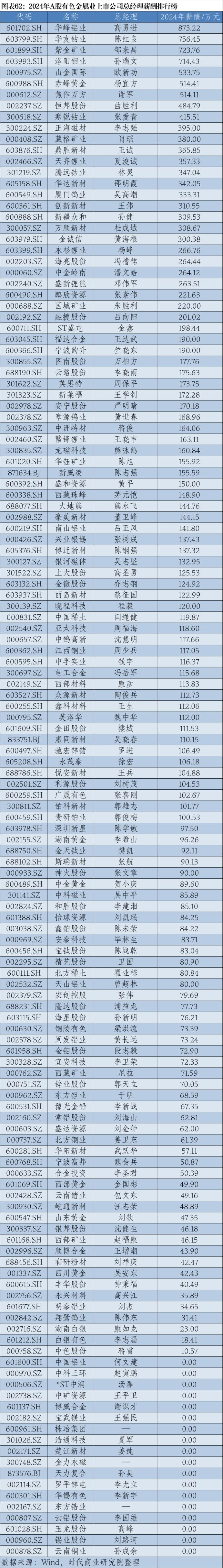 2024年,A股有色金属业总经理的薪酬平均值为168.30万元。其中,薪酬最高的是华峰铝业(601702.SH)高勇进,为873.22万元;薪酬最低的是中色股份(000758.SZ)蒋雷,为10.57万元。