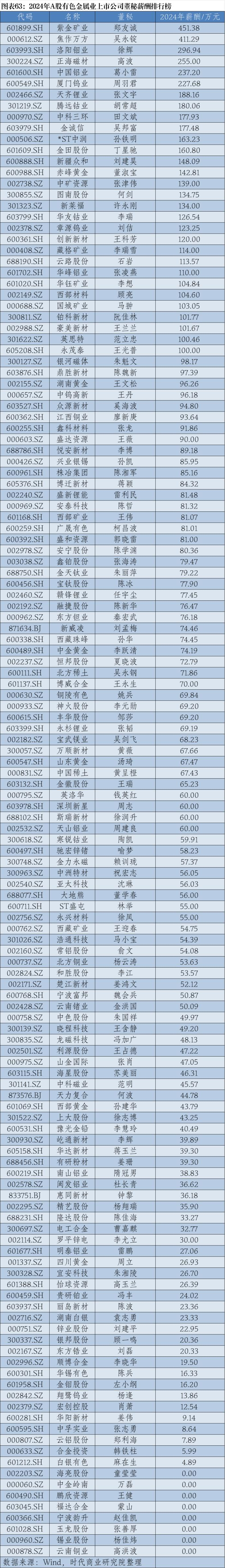 2024年,A股有色金属业董秘的薪酬平均值为80.75万元。其中,薪酬最高的是紫金矿业(601899.SH)郑友诚,为451.38万元;薪酬最低的是白银有色(601212.SH)麻在生,为4.89万元。