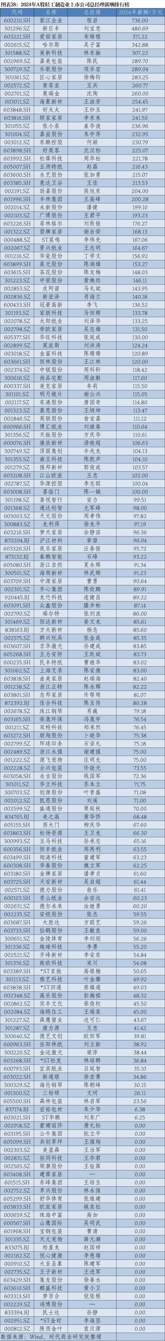 2024年,A股轻工制造业总经理的薪酬平均值为120.72万元。其中,薪酬最高的是紫江企业(600210.SH)程岩,为736.00万元;薪酬最低的是ST华鹏(603021.SH)刘东广,为6.25万元。