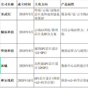 另外两家的成立时间则要更晚。其中,沐曦成立于2020年,致力于为异构计算提供全栈GPU芯片及解决方案,产品曦思®N系列用于智算推理;曦云®C系列用于通用计算;曦彩®G系列用于图形渲染。公司创始人陈伟良及多名高管均有AMD背景。