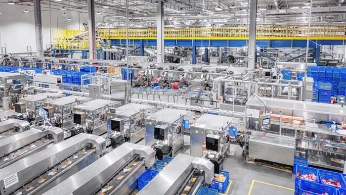 卫龙自主研发的全自动化生产设备,实现“全过程、无缝隙、智能化”生产线,自动在线监测系统100%全检替代人工抽检,工业IOT、AI视觉系统、漏油和异物X光机、在线克重剔除秤,质检不良品拦截率达到100%,效率提升40%。