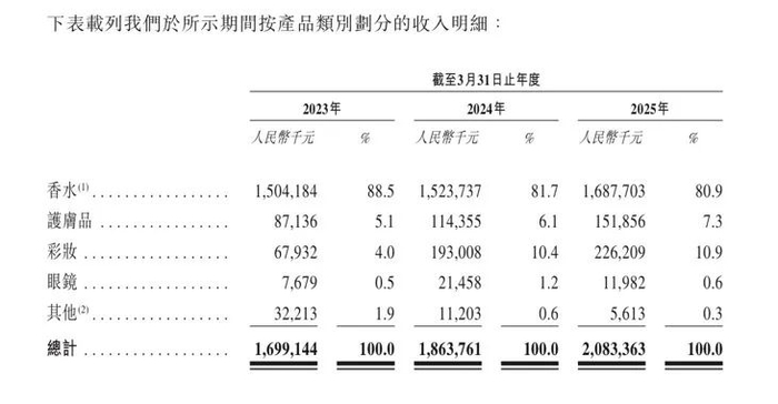 此外,公司与业务合作伙伴合作开发自有品牌Santa Monica,提供香水及眼镜。截至2025年3月31日,公司在中国400多个城市拥有超过8000个线下销售点,亦通过知名电商及社交平台线上销售产品。