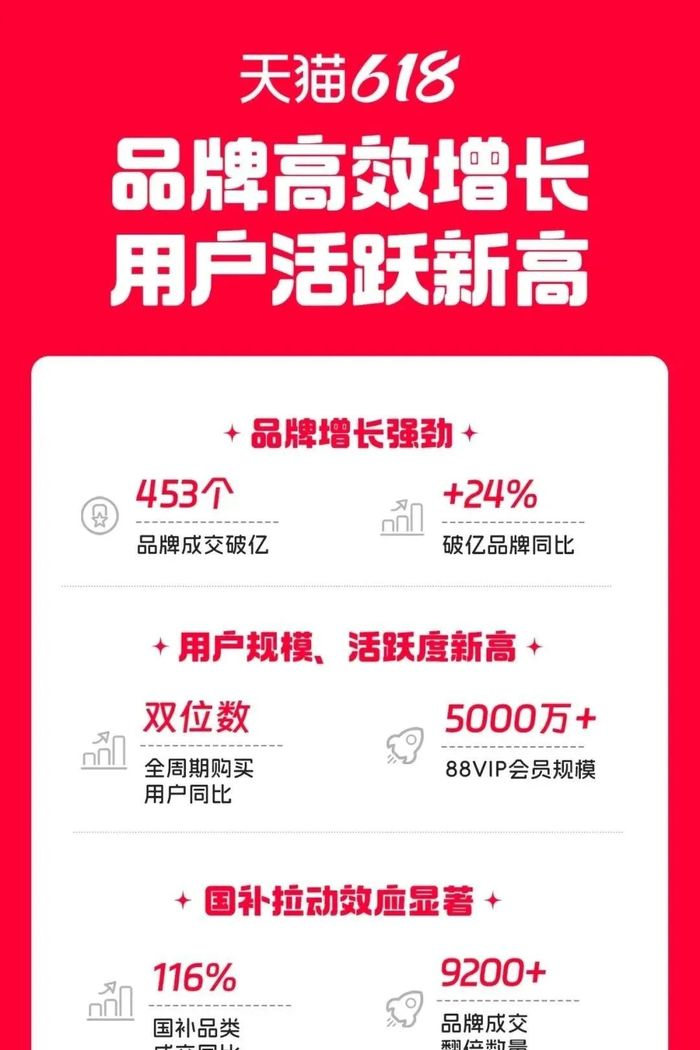 阿里巴巴集团副总裁、天猫总裁刘博向晚点透露,今年 618 全周期天猫剔除退款后的 GMV 同比增长了 10%,是阿里三年来最大幅度的增长。这是一个新的统计口径,阿里认为这样的数据更加真实,只是不知道为何他们过去从未使用过。刘博在采访中强调,平台购买用户数也实现双位数增长,同时他们的同比数据严格对比去年同期,言外之意是今年阿里平台收获了实实在在的增长。