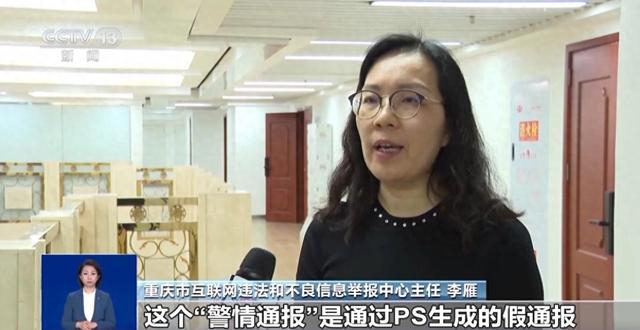 重庆市互联网违法和不良信息举报中心主任 李雁:我们及时向市公安局、市消防救援总队核实,这个“警情通报”是通过PS生成的假通报,内容与事实不符。