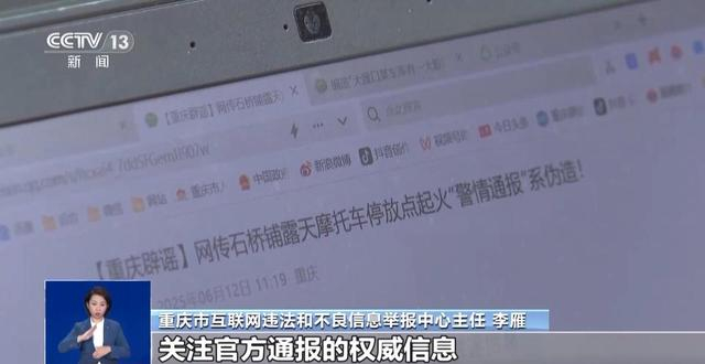 重庆市互联网违法和不良信息举报中心主任 李雁:希望广大网民在看到类似火灾、治安等突发公共事件相关信息的时候,能够保持冷静、理性,关注官方通报的权威信息,不要随意转发未经证实的消息,共同守护清朗的网络生态。