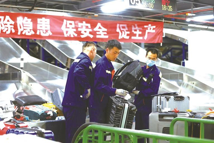 机场工作人员对旅客行李进行安全检查 图由省民航机场集团提供