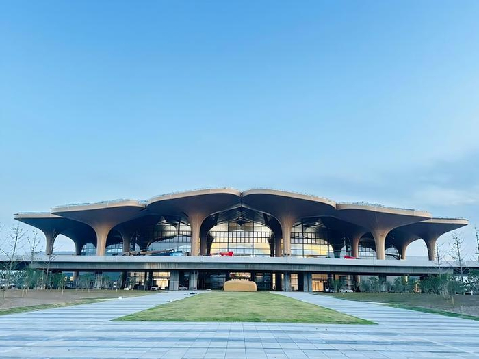 眼下,嘉兴南湖机场航站楼正全力冲刺室内装修及设备安装,22朵“杜鹃花”造型的金属屋面已然成型。这座现代化的“空中门户”,正从蓝图走向现实。