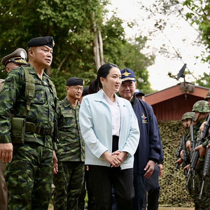 【环球时报驻泰国特派记者 杨一 环球时报特约记者 李林】泰国总理佩通坦20日前往该国东部边境地区的乌汶府与泰国陆军第二军区司令本辛会面。据泰国《国民报》报道,此访旨在访问并提高军队士气(如图),视察日前泰柬边境短暂交火后地区安全形势。彭博社称,佩通坦此行是为缓解她在一通被泄露的电话中批评军方所引发的公众不满情绪。会面后,佩通坦表示“非常顺利,现在没有任何问题了”。
