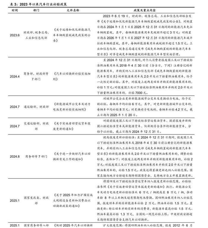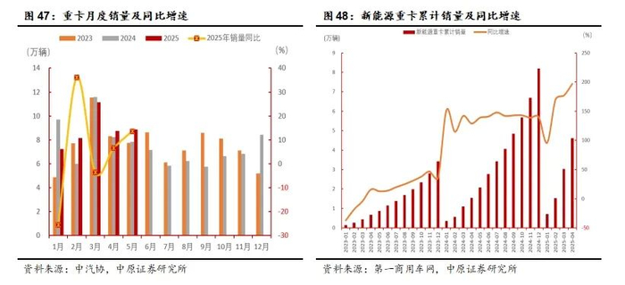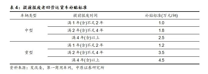 以旧换新政策有望带动货车行业销量边际增长。2025年1月8日,国家发改委、财政部联合发布了《关于2025年加力扩围实施大规模设备更新和消费品以旧换新政策的通知》,明确将“国四”老旧营运货车纳入范围;3月18日,交通运输部、国家发改委、财政部联合发布《关于实施老旧营运货车报废更新的通知》,出台2025年老旧营运货车报废更新补贴标准和工作细则,对老旧营运货车报废更新给予资金补贴,明确补贴范围,支持“国三”、“国四”排放标准营运货车更新,并实施差别化补贴,报废货车(最高补4.5万元)+新购货车(最高补9.5万元),单车最高可补贴14万元。