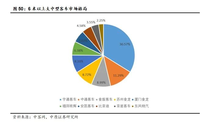 大中客市场格局稳定,宇通客车强势领先。根据中客网数据,2025年5月,其重点关注的26家客车企业6米以上客车销量8915辆,同比-19.06%,环比+4.43%,同比下降主要由于去年5月销售基数较高以及以旧换新补贴政策的连续驱动导致部分区域提前透支更换老旧新能源公交客车和传统动力旅游公路客车。从2025年前5个月市场格局来看,宇通客车仍然占据6米以上客车首位,市场占比30.57%,大幅领先行业第二名,销量超第二、第三、第四名企业的销量总和。
