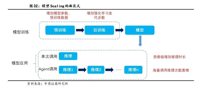3.4. 推理模型将Scaling向后训练和推理阶段转移,应用落地加大推理需求