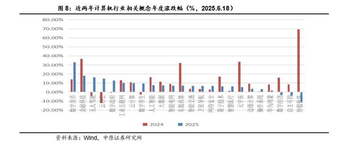 给予行业强于大市的投资评级。2025年,在全球经济疲弱的大背景下,计算机行业收入、利润增速回升,但是毛利仍在下滑,行业继续呈现出内卷迹象,全年基本面改善或仍将来自于局部赛道。考虑到目前国际局势和科技产业正在迎来的AI技术变革,下半年我们继续看好国产替代、AI技术的深入应用和智能算力需求的释放给企业带来的发展机会。