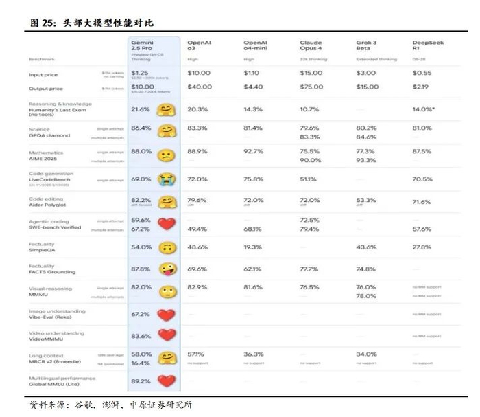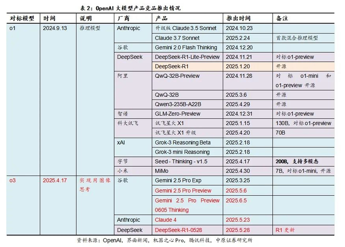 当前处于第一梯队的大模型分别为OpenAI的o3和o4-mini系列、谷歌的Gemini 2.5 Pro Preview 0605 Thinking、Anthropic的Claude 4和DeepSeek的DeepSeek-R1-0528。