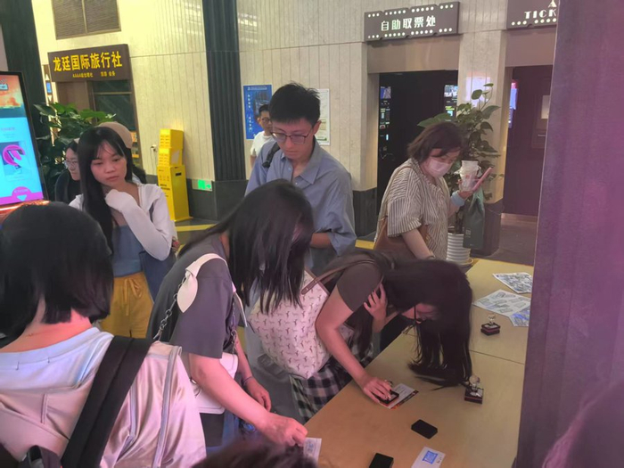 詹林小两口是刷到帖子后心怀“忐忑”入场的,又是在观影集章后“意满离”的。“有看到过讨论,事实证明体验尚好。”詹林说,观影时隔壁有位阿姨,途中电话进来,但马上挂了,“因为工作人员还蛮努力的,场灯暗下、电影开始前的最后一刻,大家看到的是可可爱爱的灯牌”。