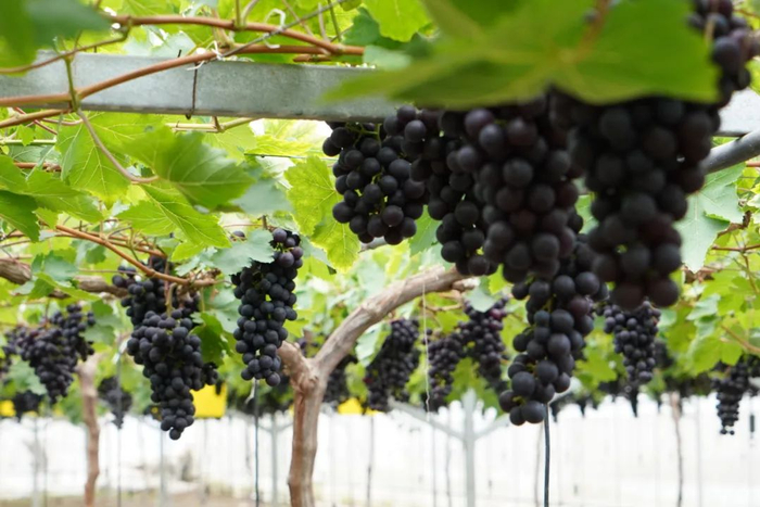 位于金山区吕巷镇的施泉葡萄园里,促早栽培的“夏黑”“寒香蜜”等明星品种已领衔登场,提前与消费者见面。作为沪上知名的“葡萄王国”,施泉共种植26个优质葡萄品种,覆盖早、中、晚熟全周期:7月经典热销的“申华”“巨峰”“醉金香”接力上市,口感鲜甜;进入8月,“巨玫瑰”“阳光玫瑰”等压轴亮相,其卓越的品质和独特风味备受市场青睐。其中的新品种“申华”由上海市农业科学院专家精心培育,凭借大粒、无核、易种、高产、肉质厚实、散发酒香以及浓郁风味等众多优点,受到大批消费者的喜爱。