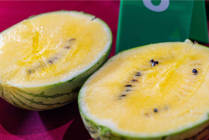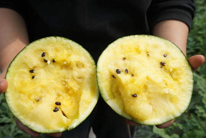 是“红小鲜”“黄小鲜”西瓜的总称。两者均为早熟小果型西瓜,果皮绿色外观漂亮,“红小鲜”果肉红色,中心糖度可达12~14度,肉质松脆,水分充足。“黄小鲜”果肉则呈黄色,果形偏圆。