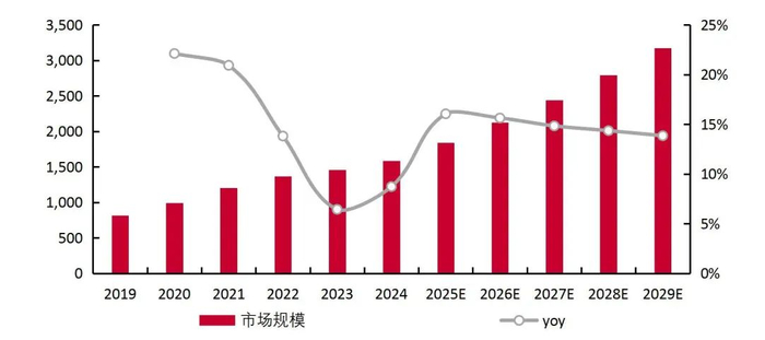 中国IDC市场呈现回暖态势,预计将开启新一轮扩张周期。在头部互联网企业规模化采购及人工智能驱动的智能算力需求推动下,IDC市场增速出现一定反弹,根据科智咨询数据,2024年中国传统IDC业务市场规模为1583亿元,同比增加8.7%;伴随着人工智能驱动下的智算算力需求激增,预计未来五年中国传统IDC业务市场规模复合增长率为14.9%,到2029年达到3175亿元。