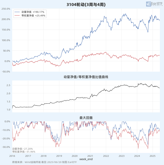 基于一堆行业指数,以2周回溯参数选择排名第1-3进行轮动