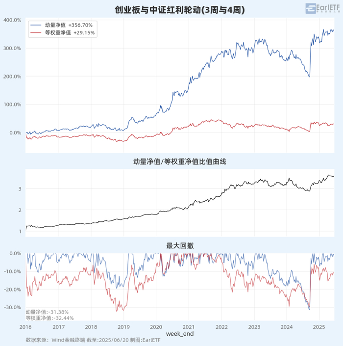 基于创业板R与中证红利全收益指数,以3周和4周并行回溯参数进行轮动