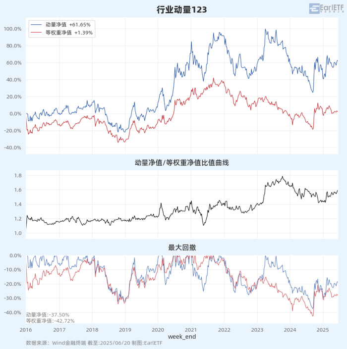 截至2025年06月20日,动量涨跌幅: -1.63%, 等权重涨跌幅: -0.97%, 动量超额: -0.66%