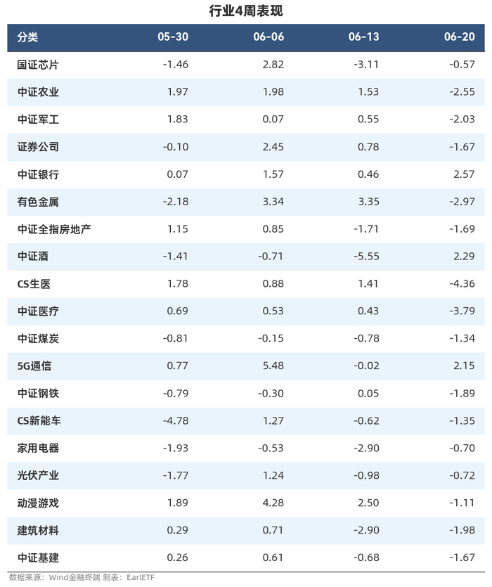 行业动量跟踪行业四周表现