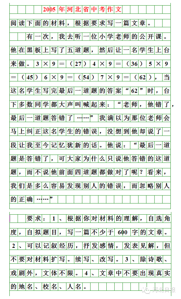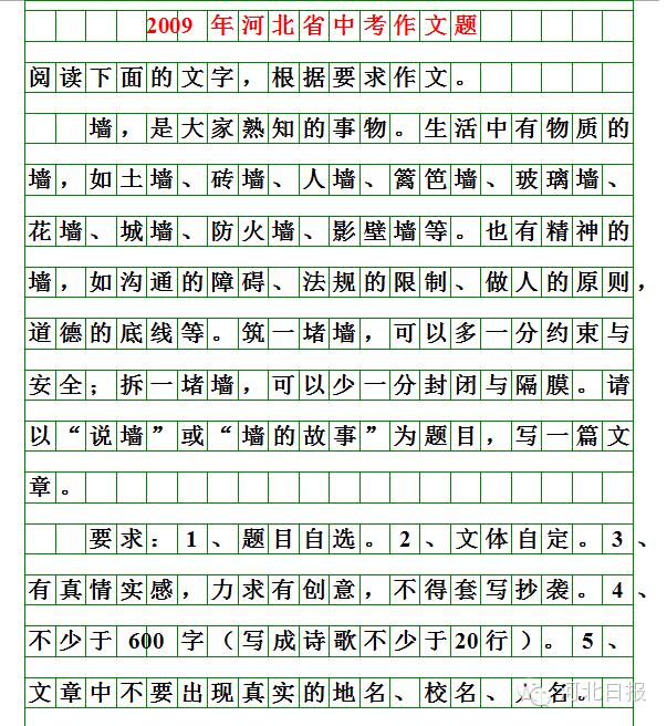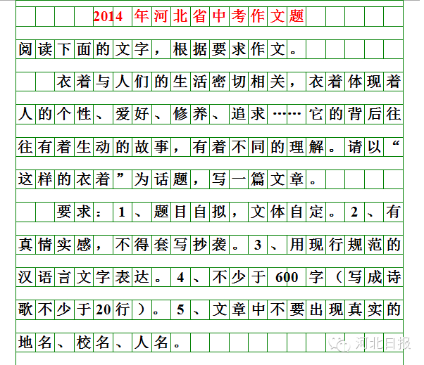 历届河北中考作文